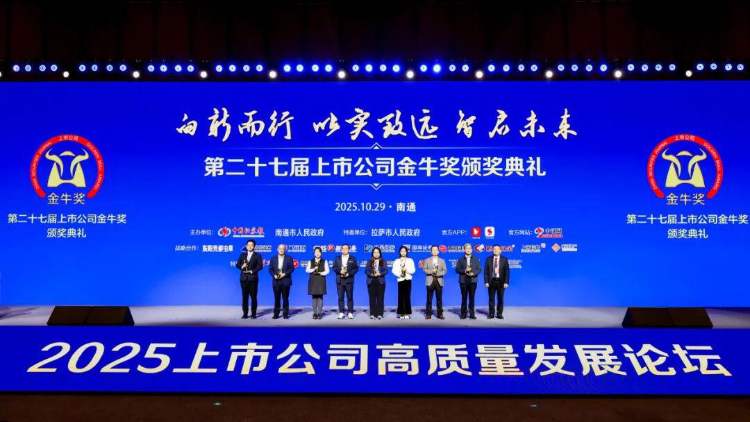 10月29日,由中國(guó)證券報(bào)與南通市人民政府聯(lián)合主辦的第二十七屆上市公司“金牛獎(jiǎng)”頒獎(jiǎng)典禮在江蘇南通隆重舉行。
